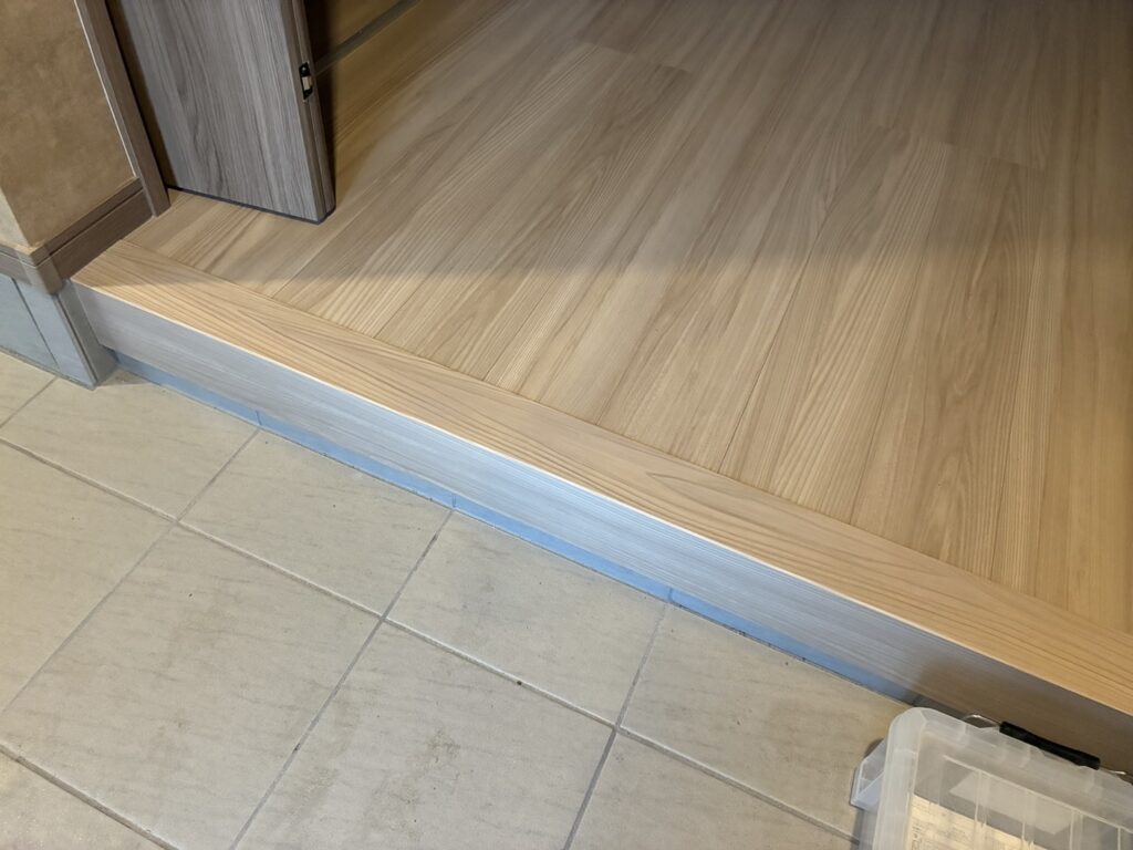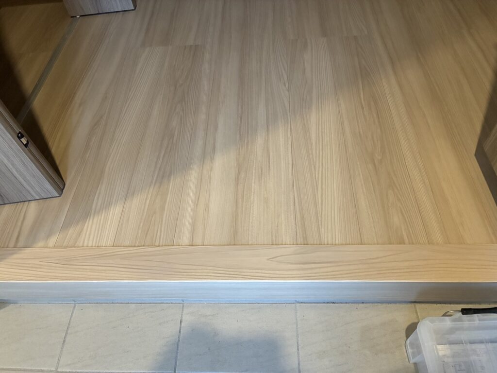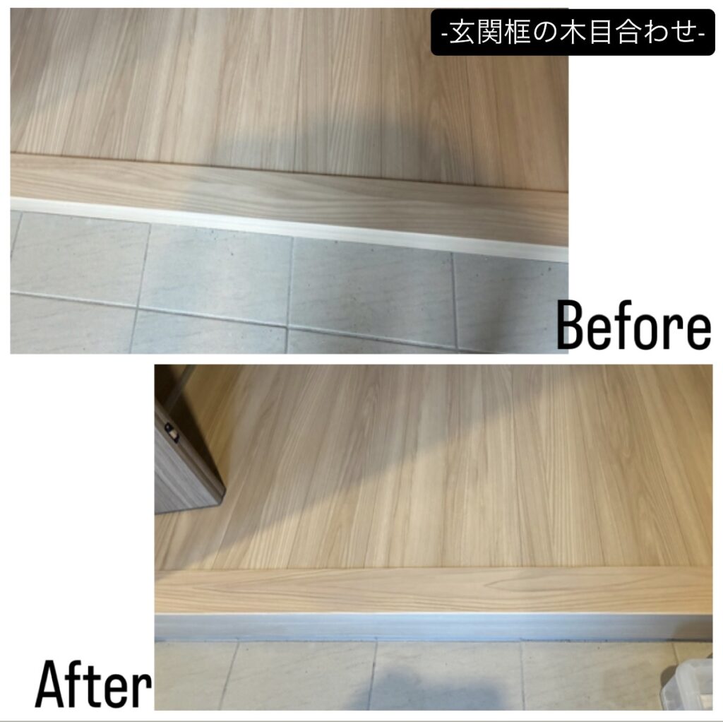 建材メーカーE様より富山県富山市でのご自宅にて、製品不良による玄関框の木目合わせのご依頼でした。では、早速Beforeにて確認してみましょう!