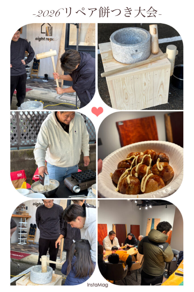 リペアの新年企画にてエイトリペア本社にてお餅つき大会を開催しておりました^^♪